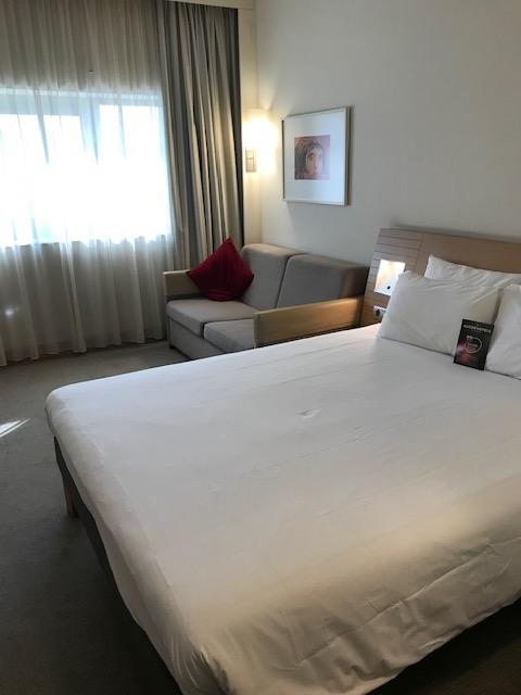 同じ系列のイビスとノボテルが並んでで建っています。本当はノボテルに連泊するつもりでしたが、深夜にガジアンテプに到着するので、1泊目はイビス、2泊目はノボテルにして少し節約しました。2日目の朝にノボテルに移動しましたが、さすがに部屋の準備ができておらず、荷物だけ預けて朝ごはんをべに行きました。前日のイビスと違って、さすがノボテルという感じで、ゆったりと過ごすことができました。