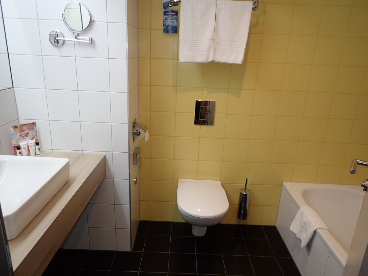 ツアーで利用したので値段や部屋の種別は分かりませんが、宿泊した部屋はバスタブも有り、広さも十分でした。近くに大きなスーパーも有り便利です。朝食はヨーロッパにありがちなコンチネンタルではなく、フルヴァフェで種類も多く、生のフルーツも有り美味しかったです。