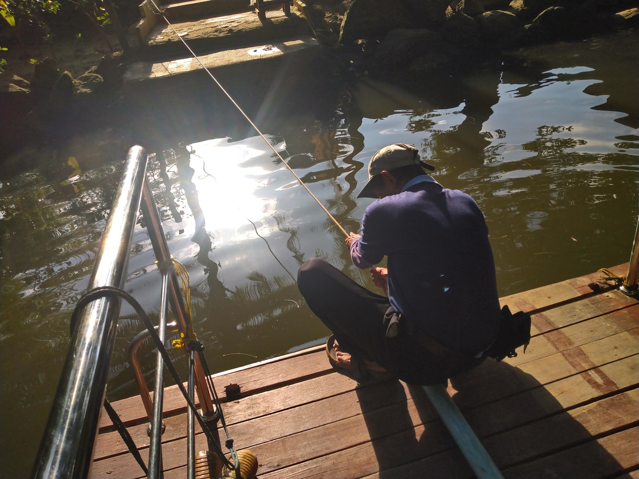 ビーチも歩いて数分の距離にありますが、途中、川で隔てられているので、係のおじさんが筏を引っ張って対岸に連れてってくれます。