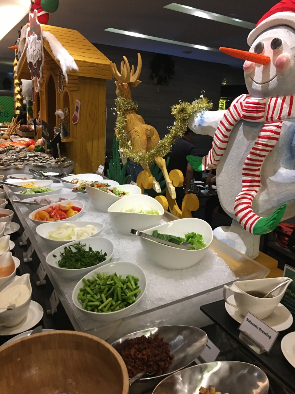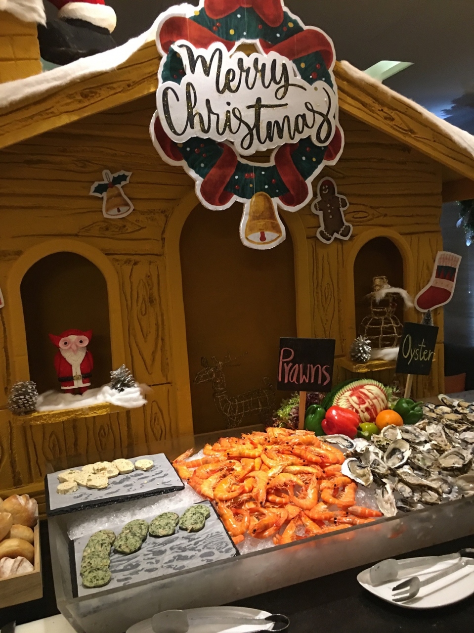 8階のZetaをEatigo で40%オフで予約しました。12月24日と25日はクリスマスメニューです。サーモン、エビ、牛肉、ソーセージはその場で焼いて、席まで運んでくれました。生牡蠣を主人と子供が食べましたが、大丈夫でした。タイというお国柄、辛い料理が多いのが難点です。当日は娘の誕生日だったので、電話でケーキを用意してもらえるか聞いたところ、サービスで用意してくれました。