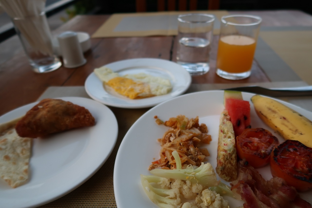 部屋はシティビュー(シャワー)、リバービュー(シャワー)、リバービュー(バスタブ)があります。ただし、バスタブ付きは2部屋のみ。利用した部屋は、リバービュー(シャワー)のダブル。お湯の温度は問題ありませんが、水圧はあまり強くありませんでした。部屋から眺めるタンルウィン川は西側にあるため、お天気が良ければサンセットが楽しめると思います。朝食はライブキッチンでヌードルと卵料理を作ってもらえます。料理の種類はあまり多くありませんでした。