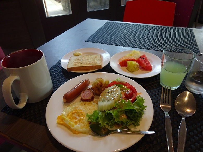【朝食】ブッフェ式でこのクラスのホテルでは種類はあるほうだとおもいました。おかゆ、みそ汁、シュウマイ、中華まん、ケーキもありました。コーヒーや目玉焼きは作り置きです。