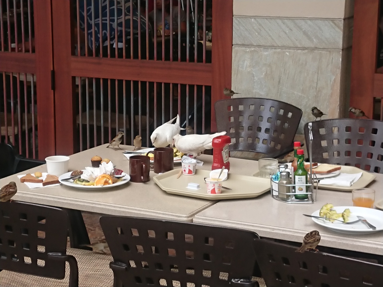 家族でのハワイ旅行で4泊しました。全室スイートルームというコンセプトなので、部屋は広くて、ゆったりしてます。ベッドルームとリビングが別なのがよいです。宿泊者は無料の朝食は、種類は少なめですが、シェフがオーダーを受けて目の前で作ってくれるオムレツは最高。大きなオムレツでこれだけでお腹が満たされます。朝食会場にはスズメや鳩がやって来て、野鳥園のような感じで、面白かった。衛生的にはよろしくないんでしょうが。イブニングレセプションのバンド演奏も、いつも満員で盛り上がってました。ビールやカクテルなど、無料で提供されるドリンクとおつまみをつまみながら、生演奏を楽しみ、その後、夕食に行くパターンが王道かと思います。