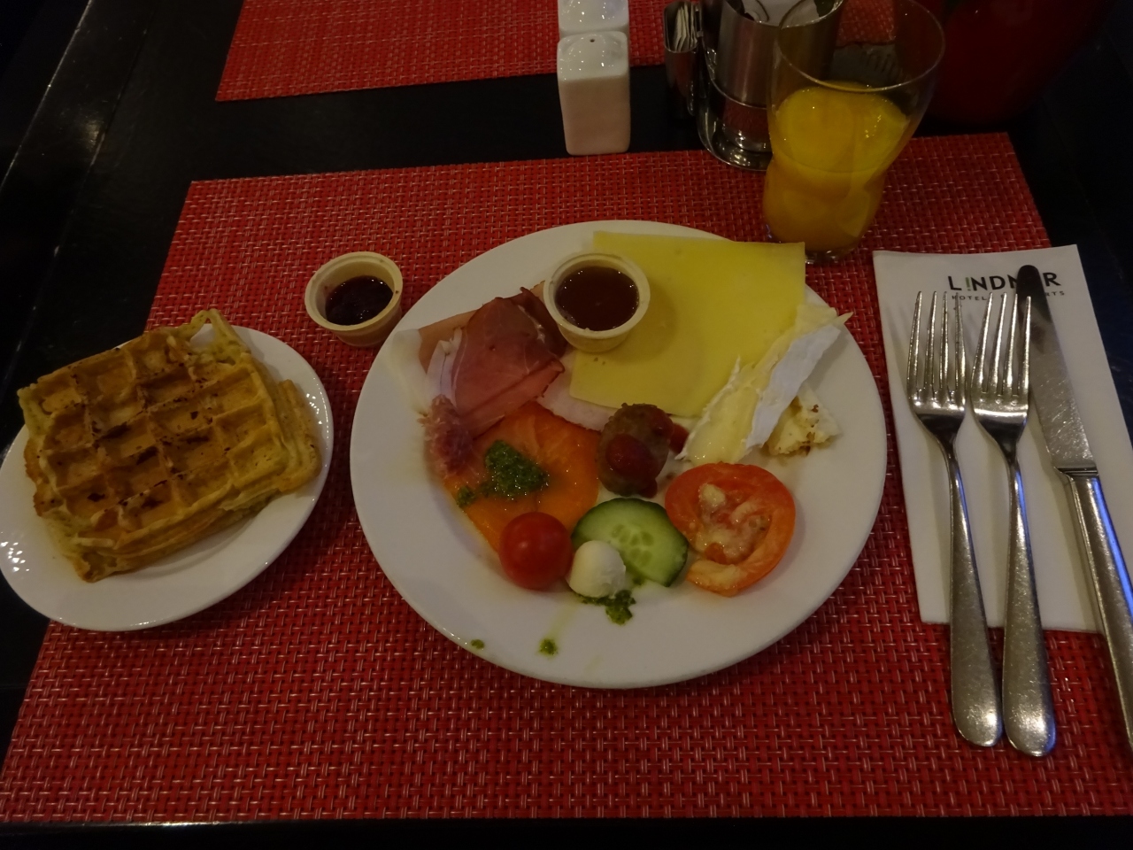 ワッフルメーカーでワッフルを自分で焼いて食べるのも楽しく、おいしかったです。