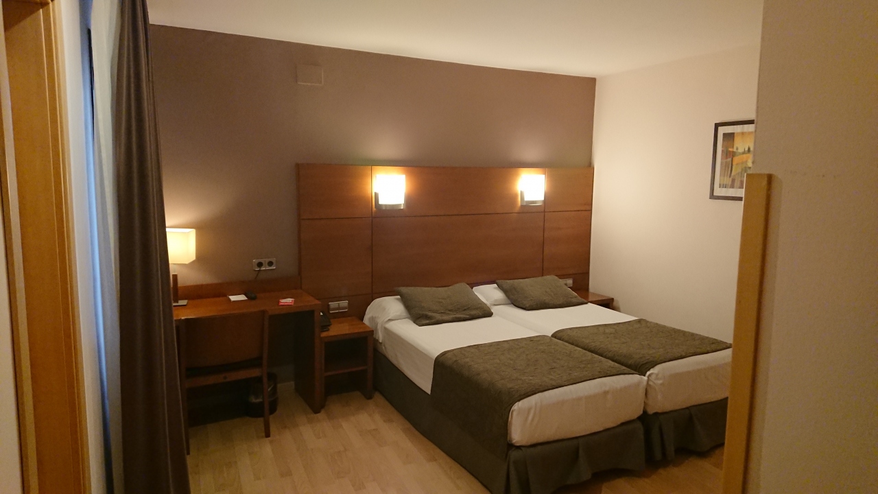 泊まった部屋は9階のツインでほど良い広さで、きれいな割に古い三菱の家庭用のエアコンが付いていました。