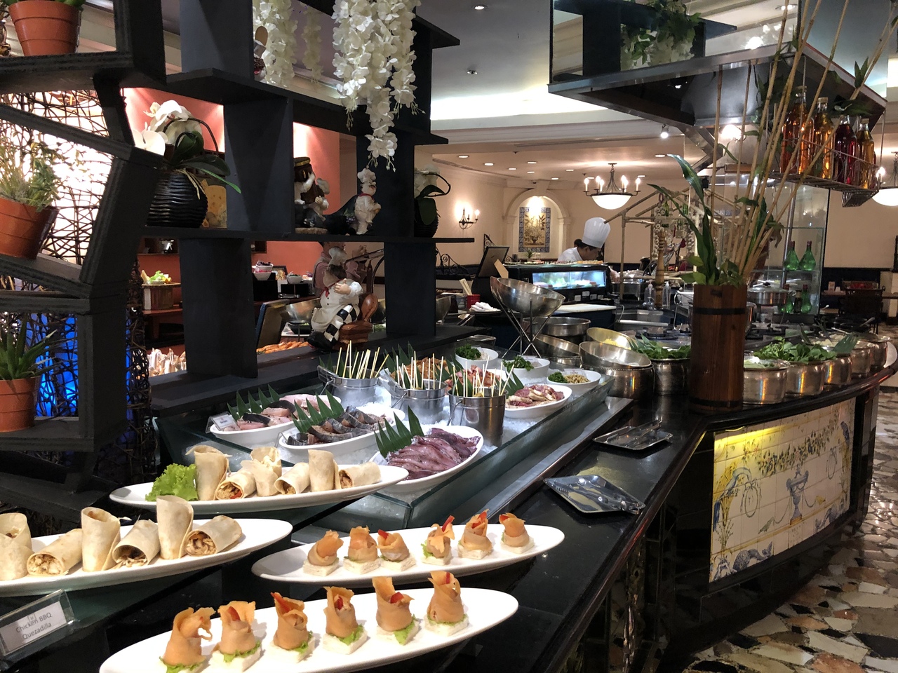 モーニングとディナーではメニューも様変わりでとても楽しめます。朝夜共通でコックさんが中央で鉄板でお料理を作られています。