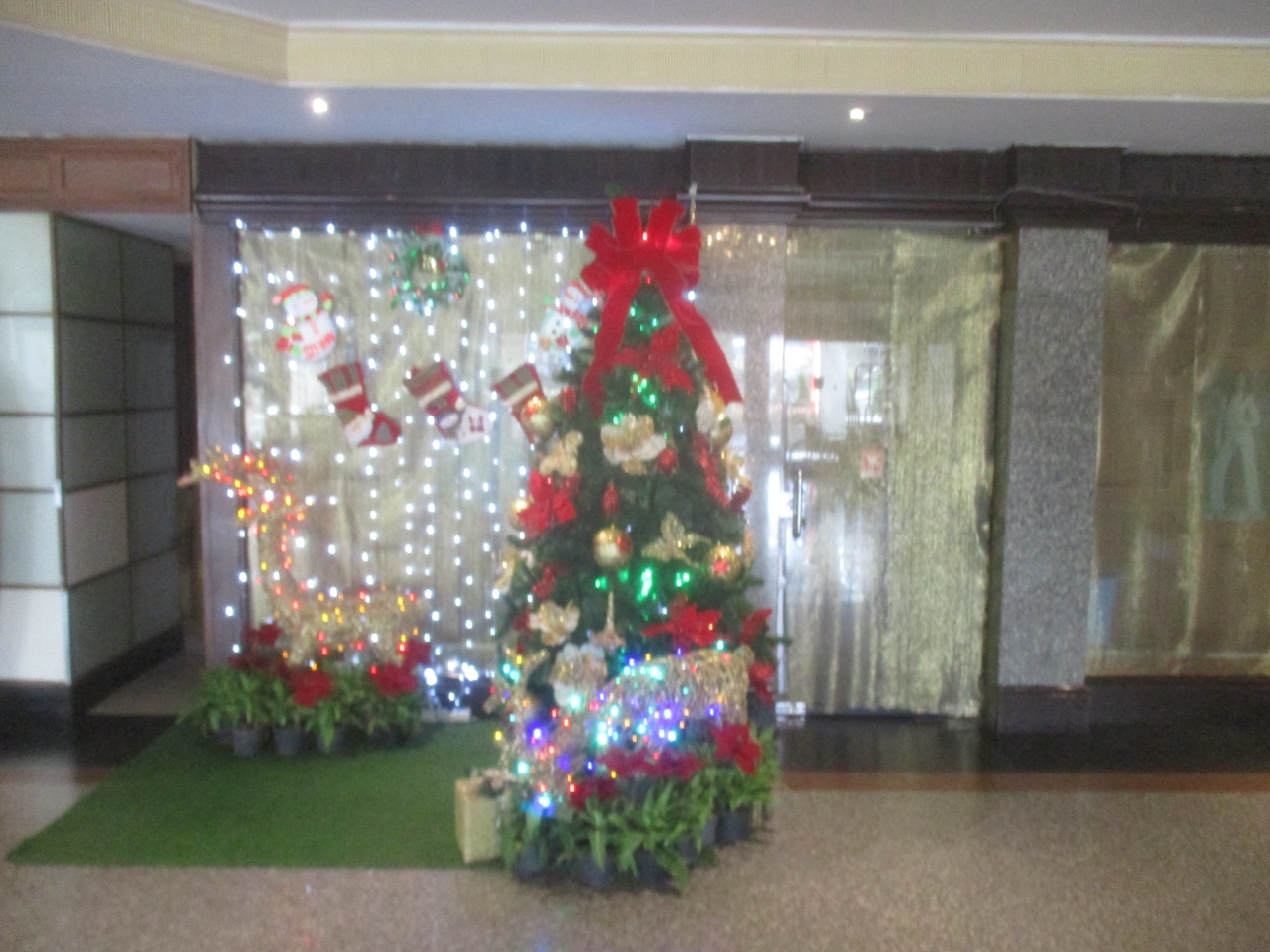 クリスマスの時期にグレースランド バンコク バイ グレース ホテルに訪問しました。1階フロントのフロント付近にはかわいいクリスマスツリーがありました。きれいなツリーで記念撮影をしてみました。アラブ系のホテルではありますが、クリスマスらしい気分に浸ることができて良かったです。