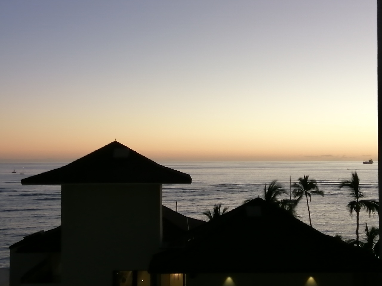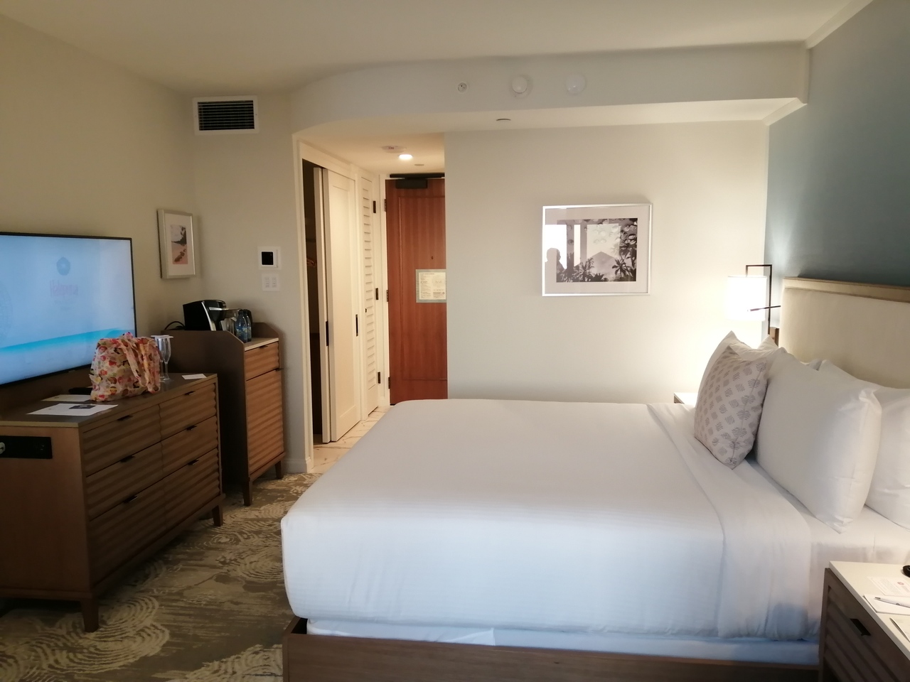 部屋はアップグレードされオーシャンビュー。ですが8階で低層のためハレクラニの屋根越しに海が見えるお部屋でした。(客室は8階から始まるようです)部屋に関しては運もあると主人とも話はしていたものの、そこだけが少し残念と感じました。眺望を期待するのであれば高層階が良いですね。