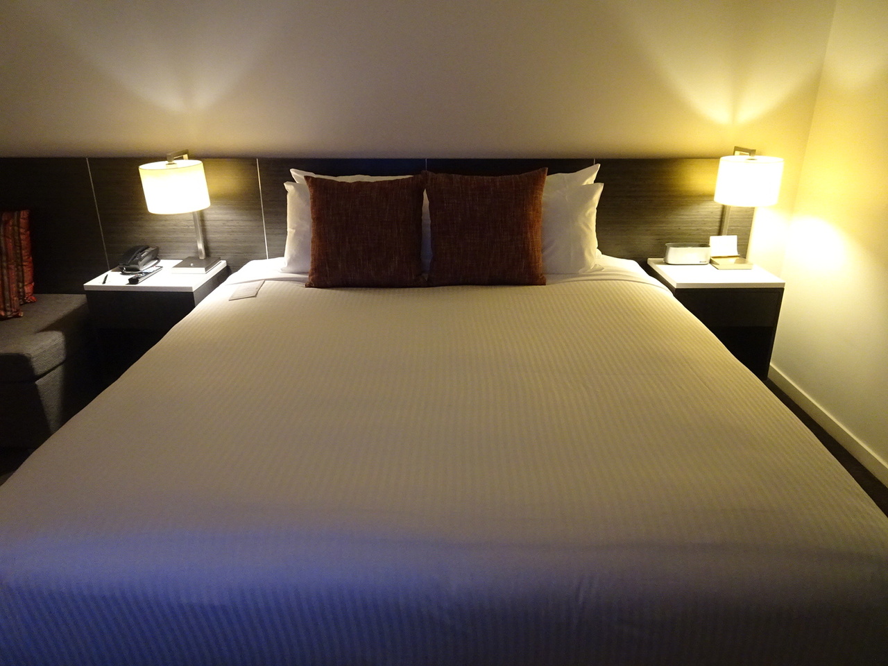 部屋は広く、ベッドもキングサイズで広々。