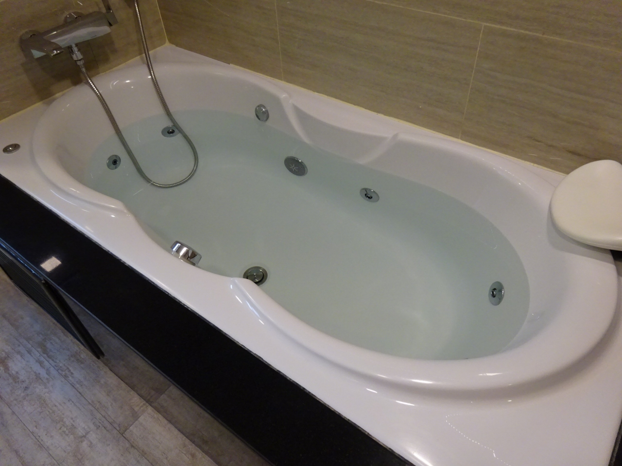 細い路地の奥に有り,リッチなエントランスやロビーはありませんが,内装はスイーツ仕様で,2台のテレビや大きなソファー等もあって,それなりに豪華な気分に浸れると思います。…バスタブも,ジェットバスで楽しめます。