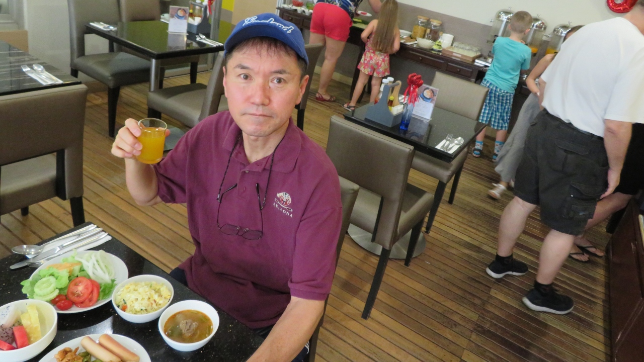 朝食は、ホテルのレストランでビュッフェスタイル朝食食べ放題が250バーツとうれしいお値段です。料理もお値段以上と言えると思います。