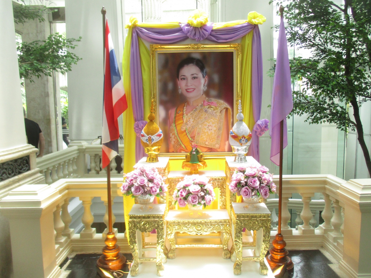 5月、新国王が戴冠式を終えて4度目の結婚をされたということで、街のいたるところで新王妃の写真が飾られていました。日本では女性皇室の写真を展示することは考えられないですが、グランド ハイアット エラワン バンコク ホテルには新王妃様の写真が飾られていました。国全体で祝福しているような雰囲気でした。