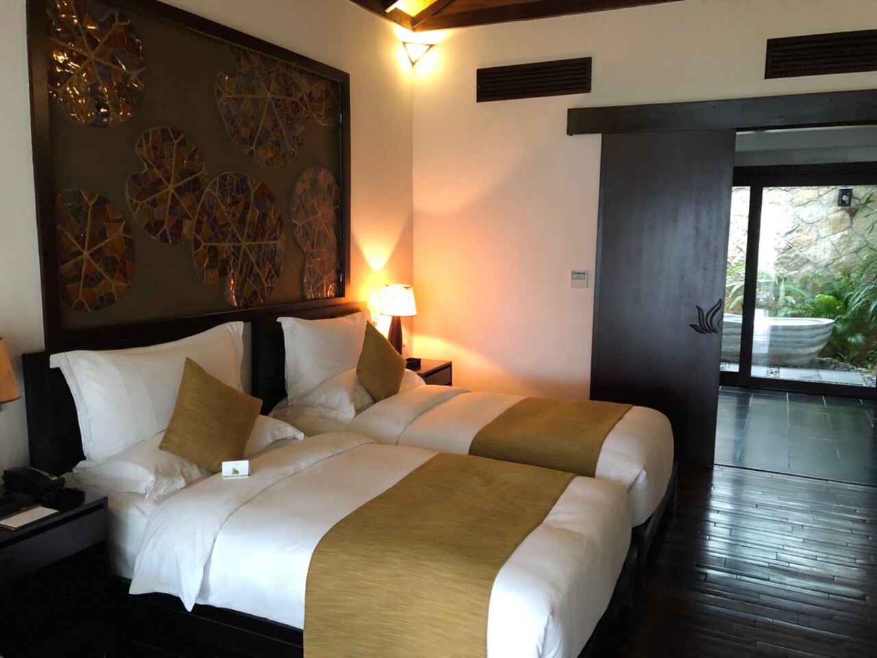 お部屋も広くリゾート感満載です。洗面所はダブルシンクで使い勝手は良かったです。