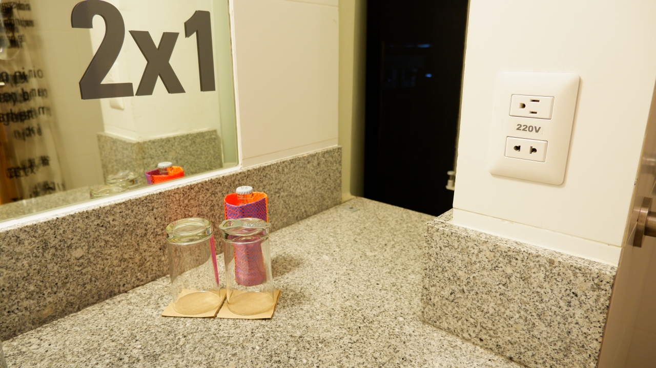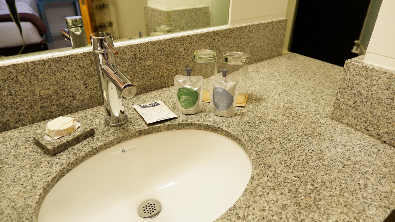 エコロジーが徹底されているのか、バスローブやタオルも必要最小限で、洗面所に置かれていた水も小さな瓶入りのもの、石鹸等の包装も紙でした。