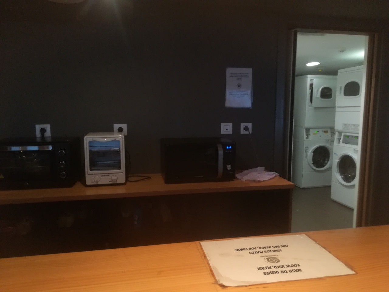 コインロッカーがある休憩スペースは電子レンジやトースターがある簡素なキッチンがあったりランドリーもあり使い勝手よく利用している方もいました。