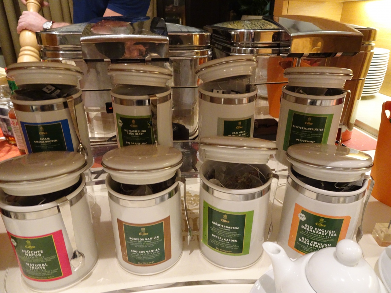 朝食は素晴らしかったです。紅茶やコーヒーはポットで用意され、お料理の種類は豊富でサラダ、ニュルンベルグソーセージ、クグロフ、レープクーヘンまであり、どれもとても美味しかったです。フロントやレストランのスタッフは皆感じよかったです。