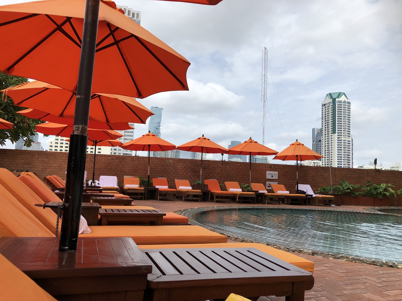 客室は広々、アメニティも充実していてTwiningの紅茶がそろえてあったのが嬉しい!バンコク リバーサイドを見渡せるテラス、日焼け欧米人多めのプール、広々としたジム設備がとても充実していました。