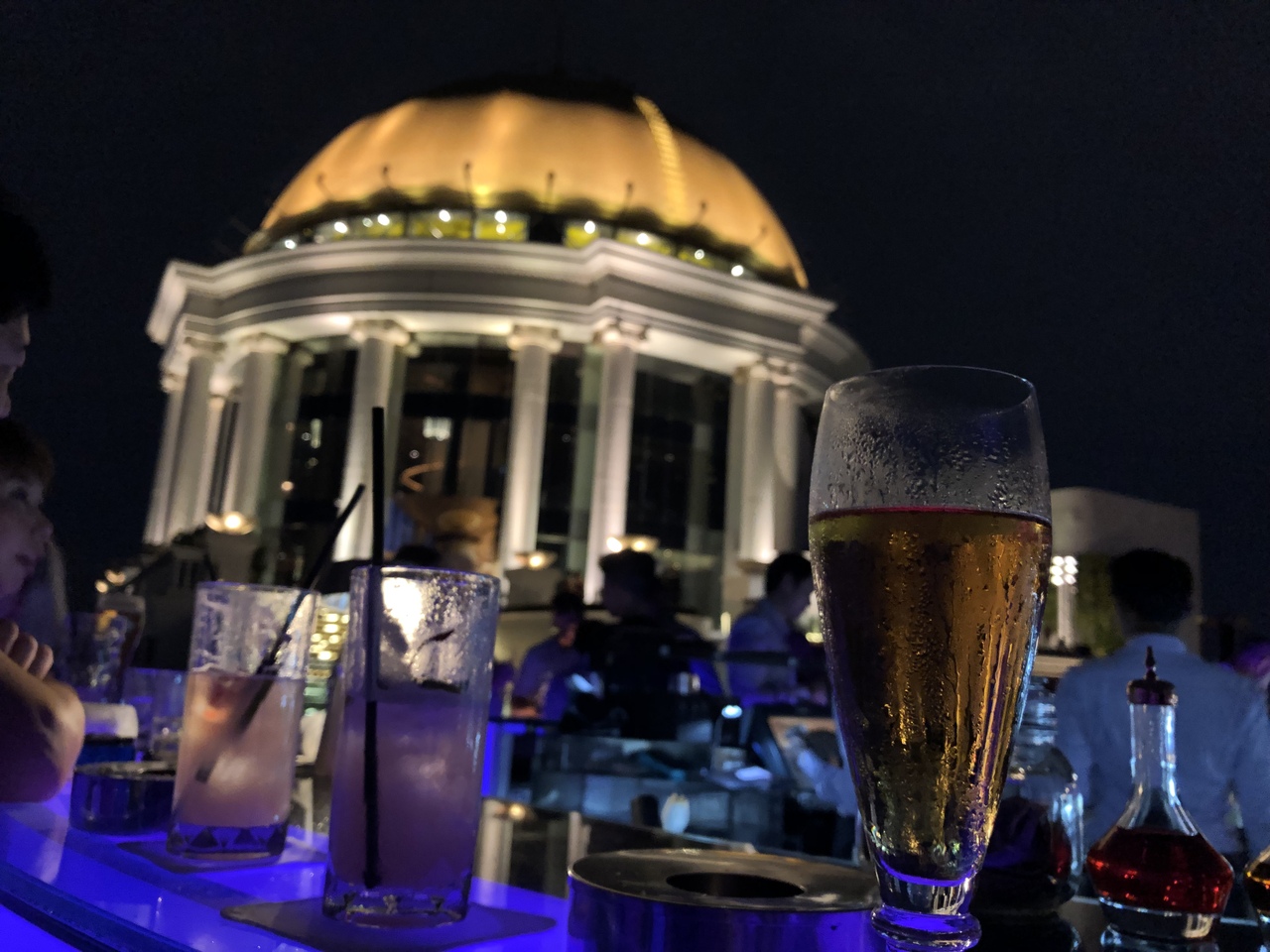 屋上階専用のエレベーターに乗って、レストランとバーどちらへ行くか聞かれるのでスカイバーと答えるも別のこじんまりしたクラブのようなバーへ通されたので、スカイバーに行きたいんだけど…というと、ここで注文して飲んでから案内するからと言われなかなか案内してくれず。いいから連れてってと強めに言うと呆れ顔でスカイバーまで連れて行ってくれました。