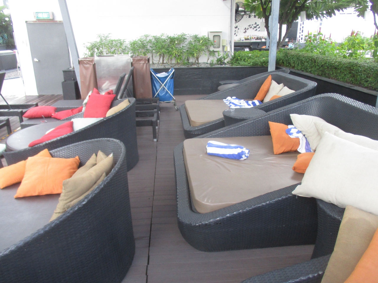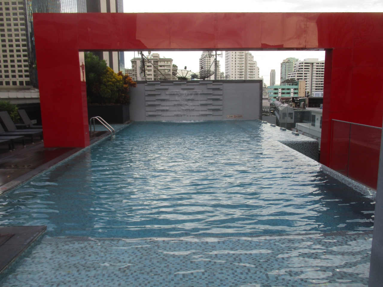 フォー ポインツ バイ シェラトンの9階のプールはリゾート感溢れる雰囲気があります。バンコクではなかなかこういったプールを所有しているホテルは少ないです。日中になると混雑するが朝の時間帯は空いておりくつろげます。7時過ぎに利用すると、すでにバカンスを楽しむファランがいました。