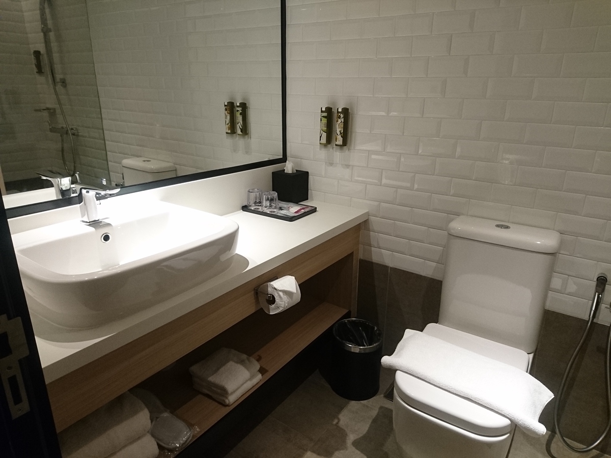 夜遅くKUL空港に着いて翌朝にはレダン島へ向かう便に乗るので、近くて便利なこのエアロテルKLIA2に宿泊しました。部屋は清潔で、使い捨てスリッパもあるしタオルも十分にありました。空港内のお店やフードコートにもすぐに行けるのが便利で、夜中ですが目の前のコンビニで酔い止めを買えました。
