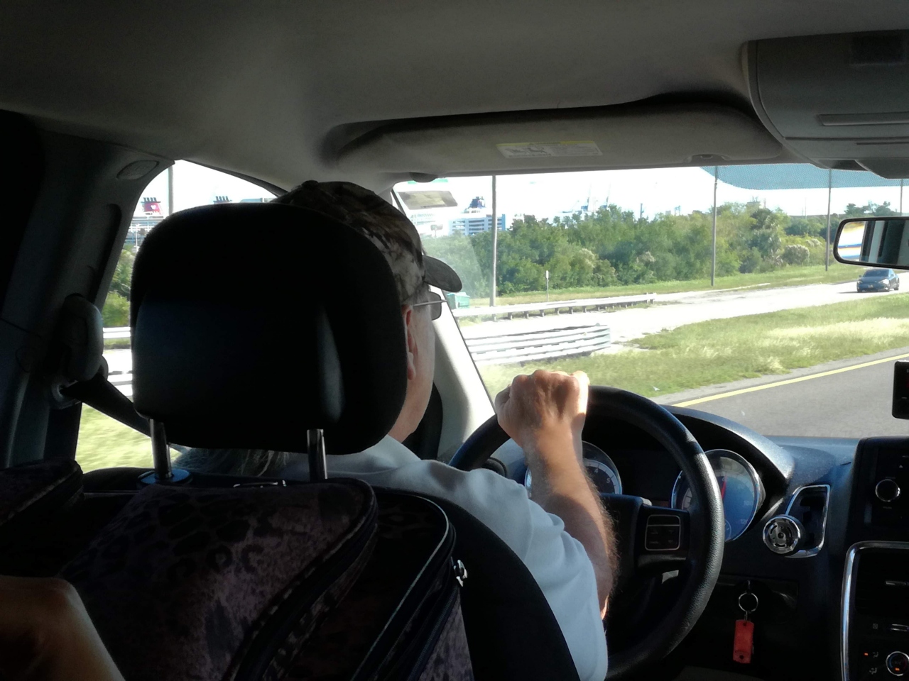 クルーズターミナルへの送迎タクシーが予定時刻よりも随分遅れ、数名イライラ。