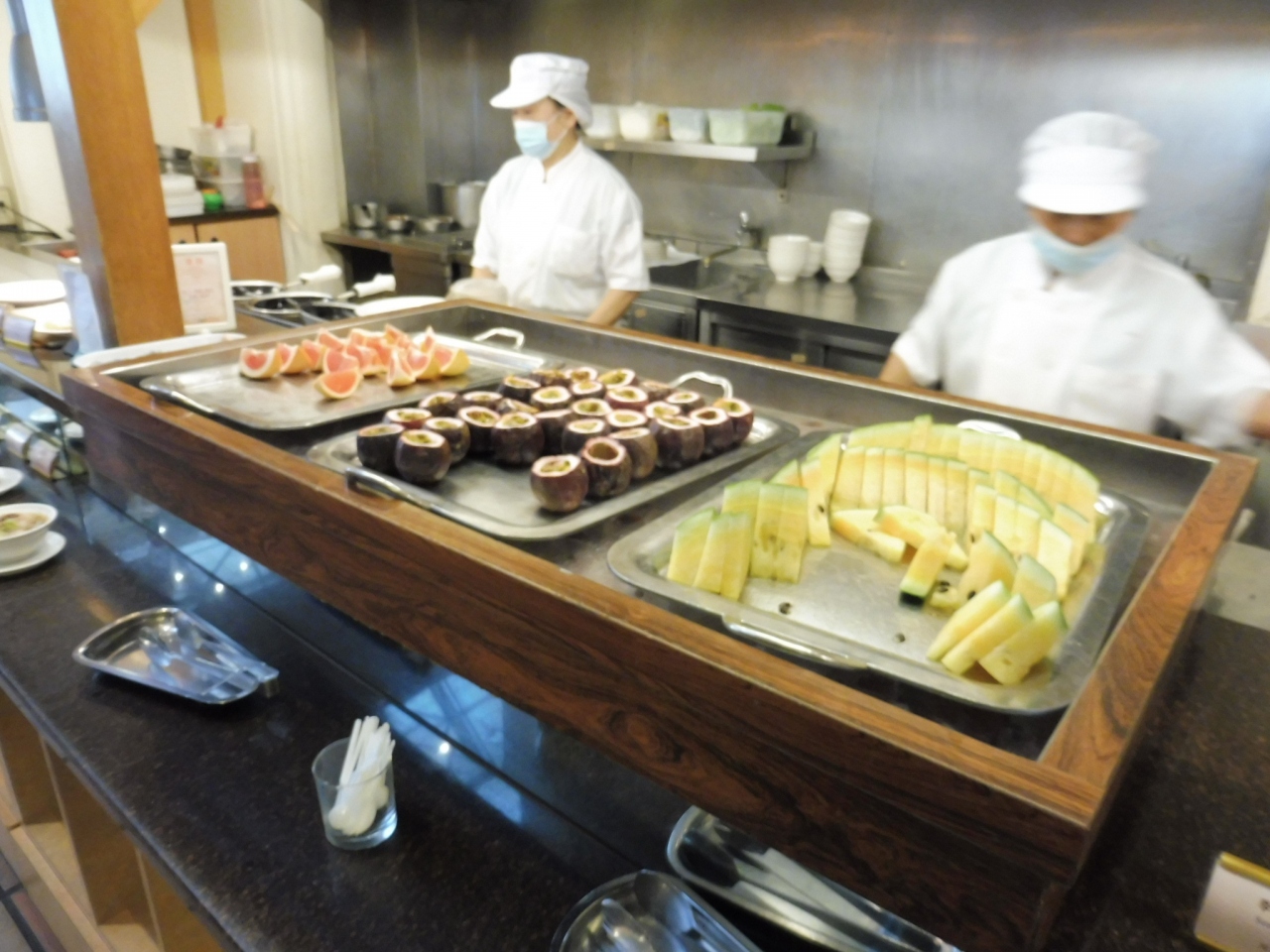 待ちきれず席を移動して食べました。フルーツ類が充実していました。