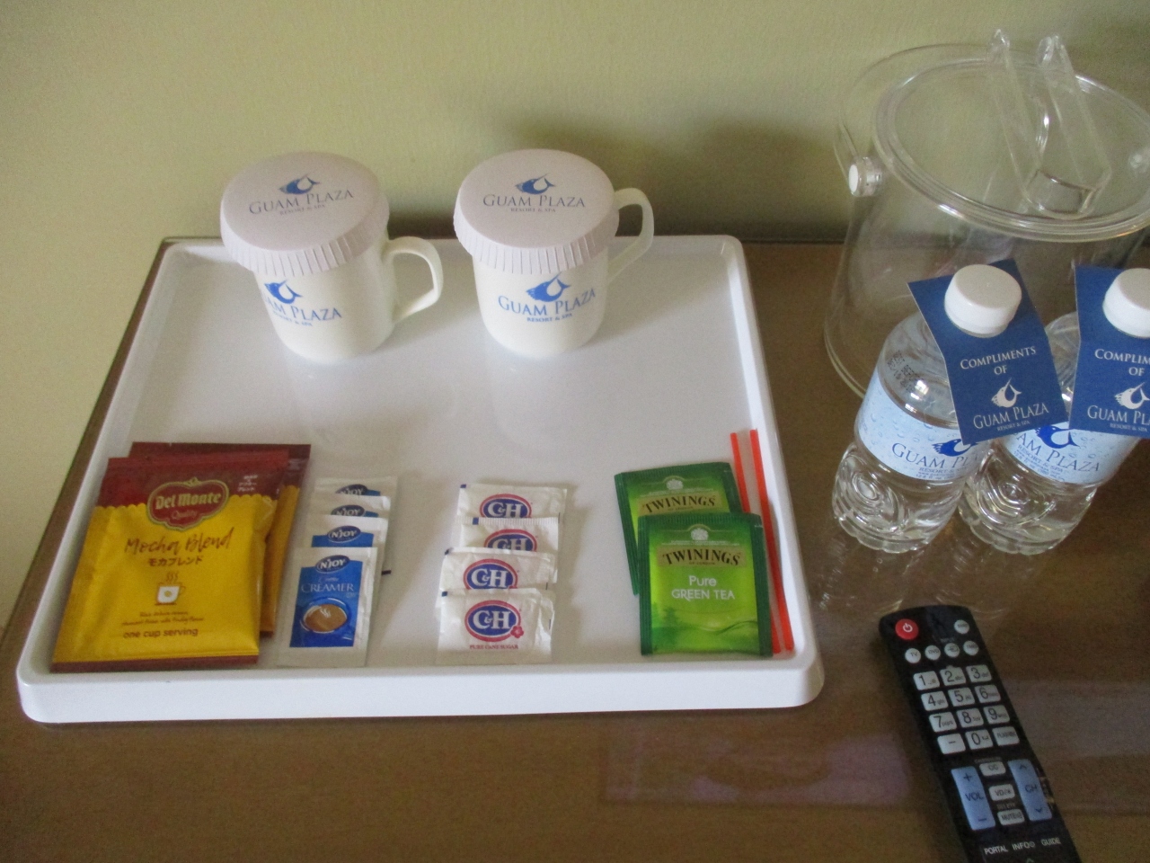 グアムのエコノミーホテルにミネラルウォーターが付いていないことがありますが、こちらのホテルにはミネラルウォーターが毎日2本付いてきました。ピークは過ぎたとは言え、1月のグアムは暑く、ホテルに戻ってから冷やしておいた水を飲めたのはありがたかったです。
