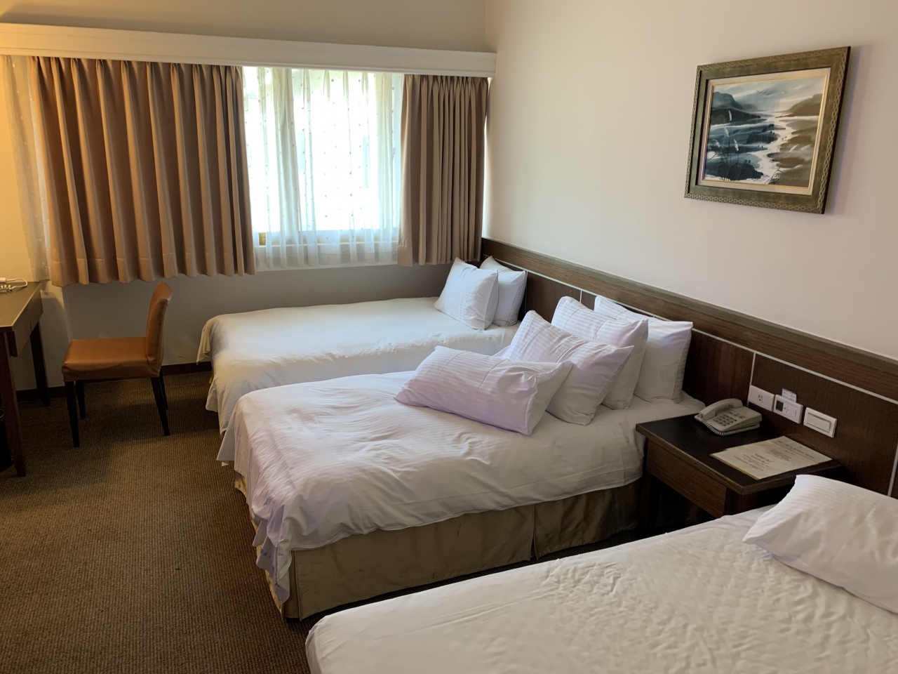 文心路、臺灣大道の交差点近く、もとは愛買(アイマイスーパー)がありましたが今は無く。日本人のツアーにも良く利用されるホテル。素泊まり2500NT$でしたが、アップグレードなのか3ベッドルームに一人。決して新しいわけではありませんが、そつなく安定のホテルです。交通は便利ですが、付近にコンビニ等が無いのでご注意を。