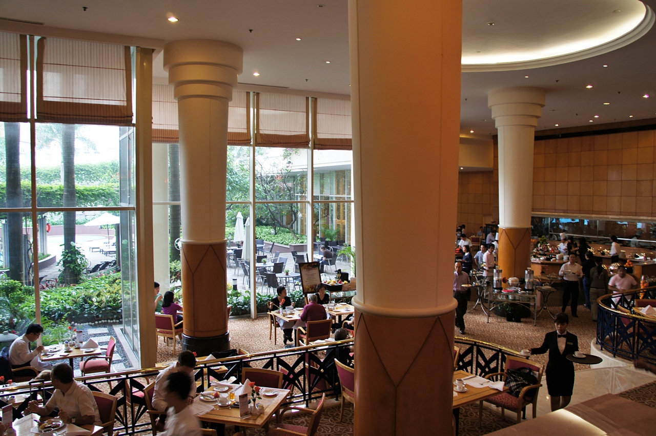 設備では、アトリウム カフェが快適。朝食ブッフェは和洋中すべてが揃い、フォーもリクエストに応じて調理してくれて、全体的にとても美味しいです。