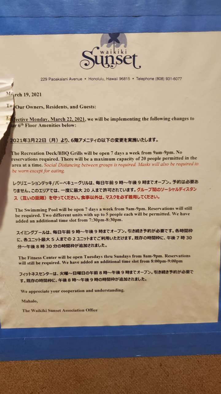 ハウスキーピングサービスはコロナの状況が変われば復活するのかもしれませんが、今回のように無いとなると、リゾートフィーに含まれる新聞もDVDもプレイステーションも利用しない我が家には、WIFI代だけな感じでリゾートフィーが割高に感じてしまいましたf(^^;