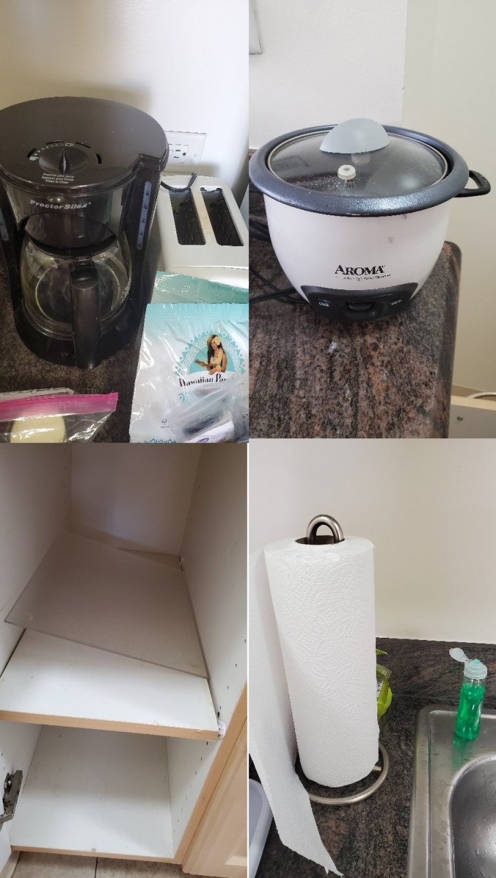 炊飯器は2合炊くと満タンの出来上がりでした。炊飯器用の計量カップはついていなかったので、キッチンに付いていたアメリカ容量の計量カップで図って使いました。
