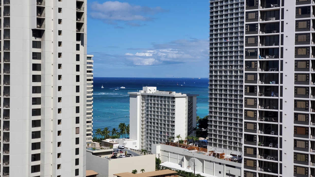 23階のお部屋で海が見えたので、パーシャルオーシャンビューの部屋に変更してくれたのかもしれません。