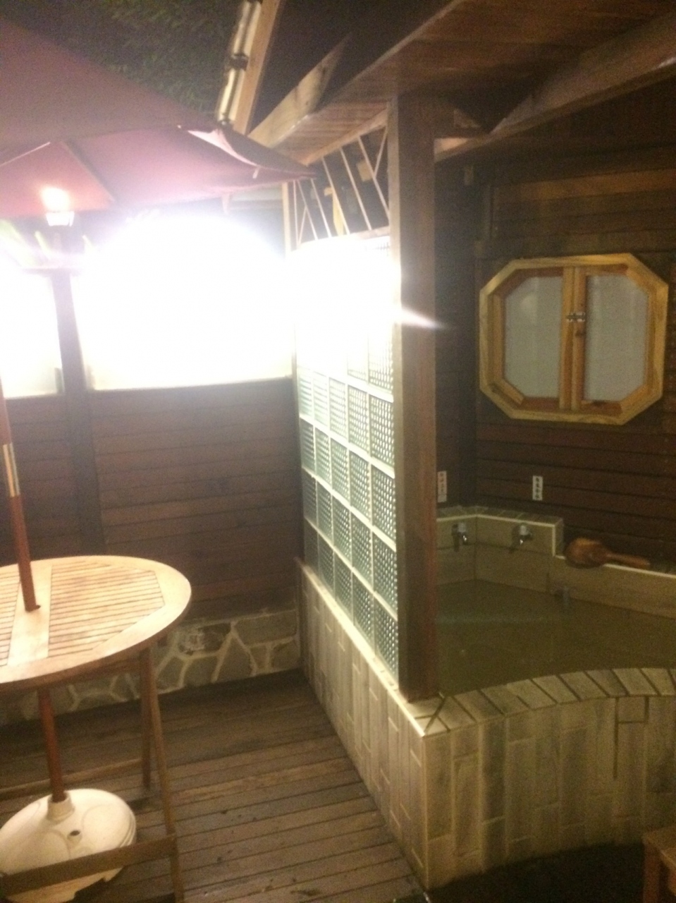 屋外のテラスでの温泉入浴は大変気持ちよかったです。和室があり、そこだけ畳になっていたのも良かったです。畳の部屋があるだけでも日本人は、落ち着きます。シャワーとトイレは別になっていて、部屋の中を通る必要がありました。