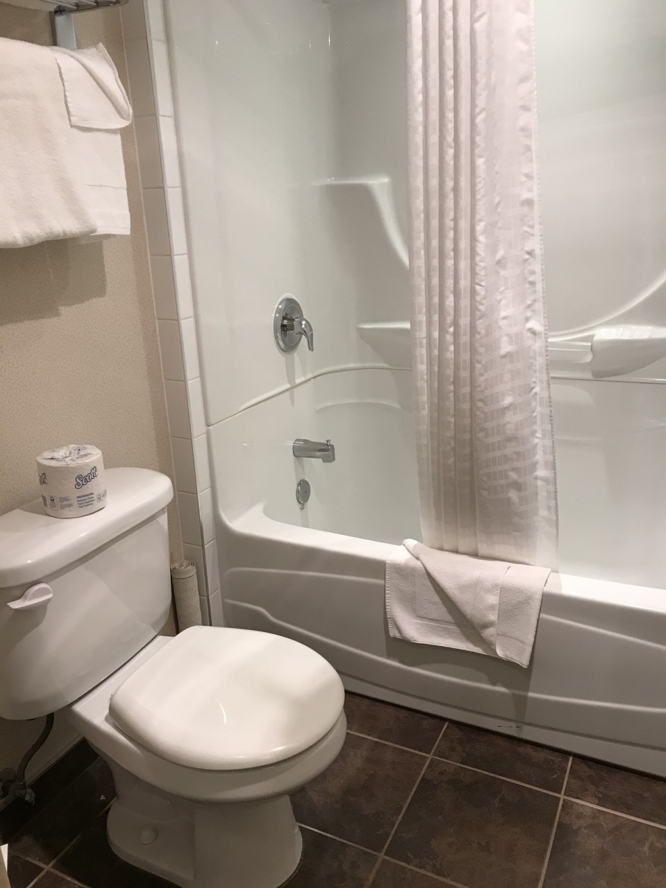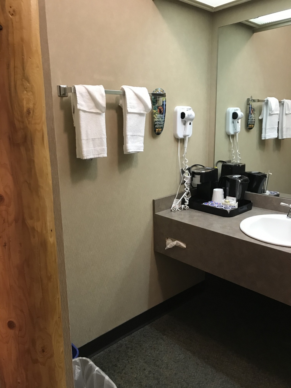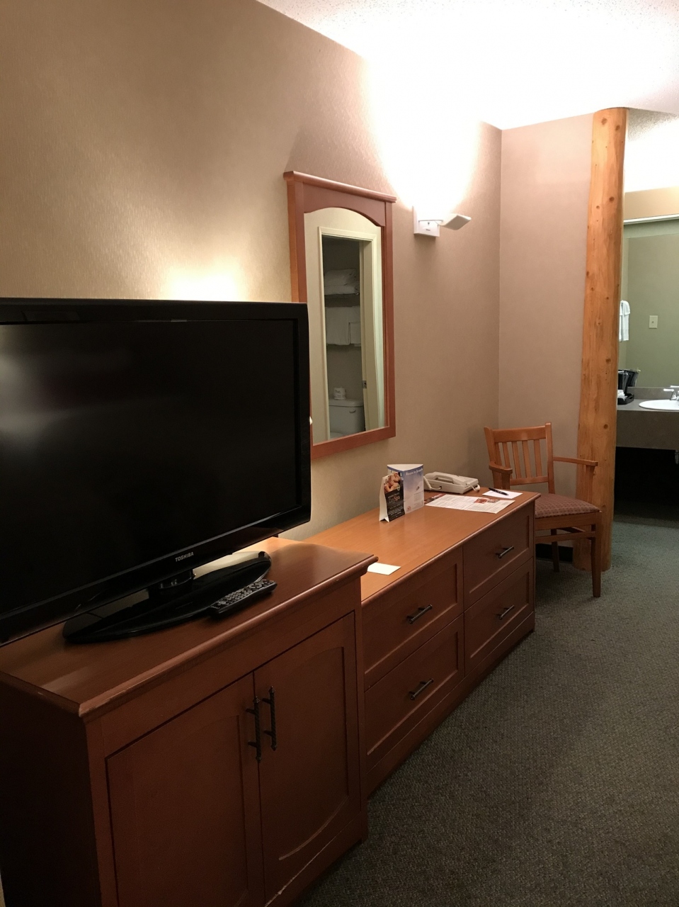 旅行会社のツアーで連泊利用。2階建てで何棟かに分かれている造りです。ホテルとは違い普通のアパートのように外から自由に部屋の玄関ドア前まで来れるので最初はちょっと落ち着かない気分でしたが、慣れるとホテルにはない個室感と開放感がありました。ジャスパーは星空がとても綺麗に見られるので、お風呂にお湯をためているとかのちょっとした時間に玄関前に出て星空を見上げたりしていました。明け方にはホテル前の道でエルクを見たツアー仲間もいたようです。