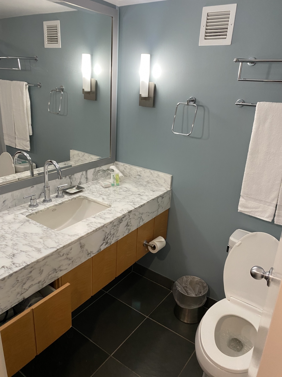 このホテルの特徴はアラモアナショッピングセンターに隣接していて2階からアラモアナショッピングセンターにアクセスできることです。設備はそれほど気になる箇所はありませんが、エレベータの隣の部屋はかなりうるさいようです。6階と13階にランドリールームがありますが、このホテルはクレジットカードで利用できるので、25セント硬貨をたくさん用意しなくて済むので便利です。コナタワーの方にコンビニもありますので、お水やスナックなどちょっと買うのには便利です。朝早くからスターバックスコーヒーも開いていますのでこれまた嬉しいです。ただ夕方は5時ぐらいには閉まっていました。