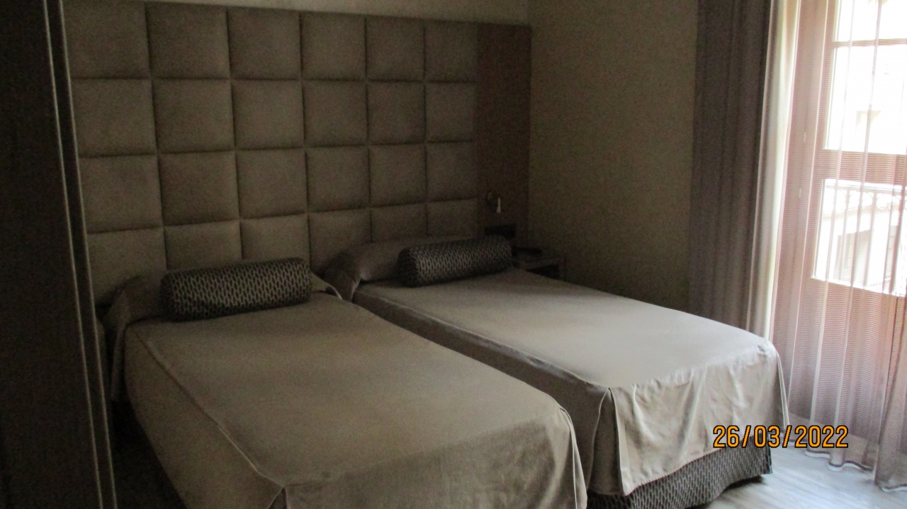 部屋は広くはありませんが通りに面して窓があり、一人旅には充分。