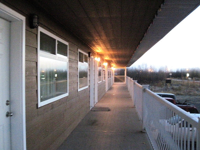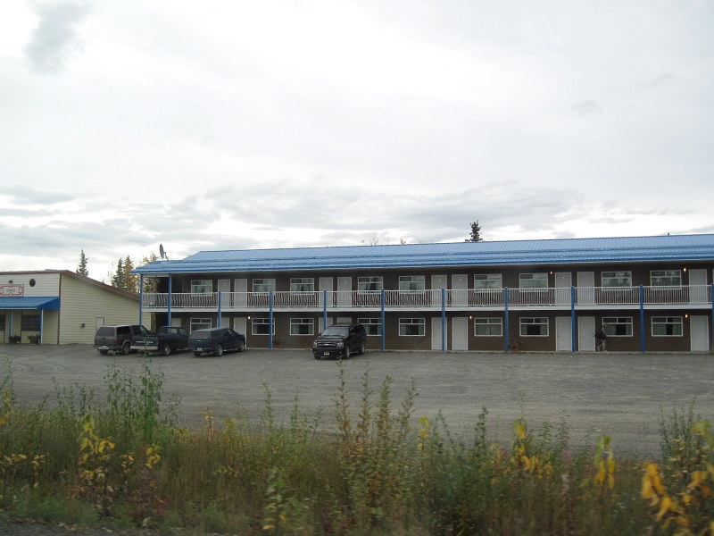 カナダへの入国を済ませ、少々走るとビーバー・クリーク(Beaver Creek)の町に入る。この小さな国境の町に商店はなく、モーテルが3つ、冬季閉鎖に入ってしまったホテルが1つと、街の人口はけっして多くないようだ。