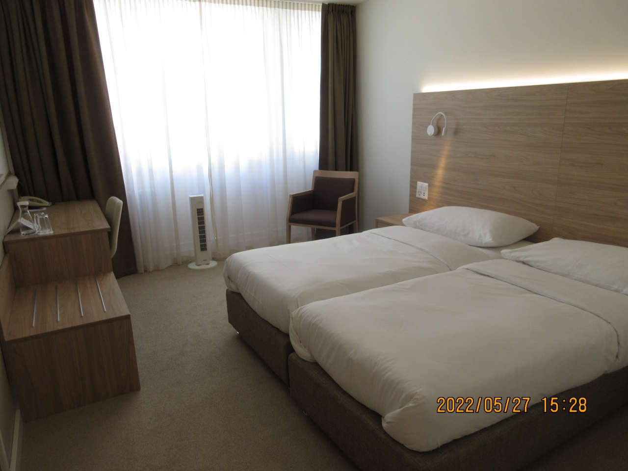 ホテルは全体的に比較的新しいが、部屋はやや狭い。セーフティボックス、電気ポット、冷蔵庫は備わっていた。