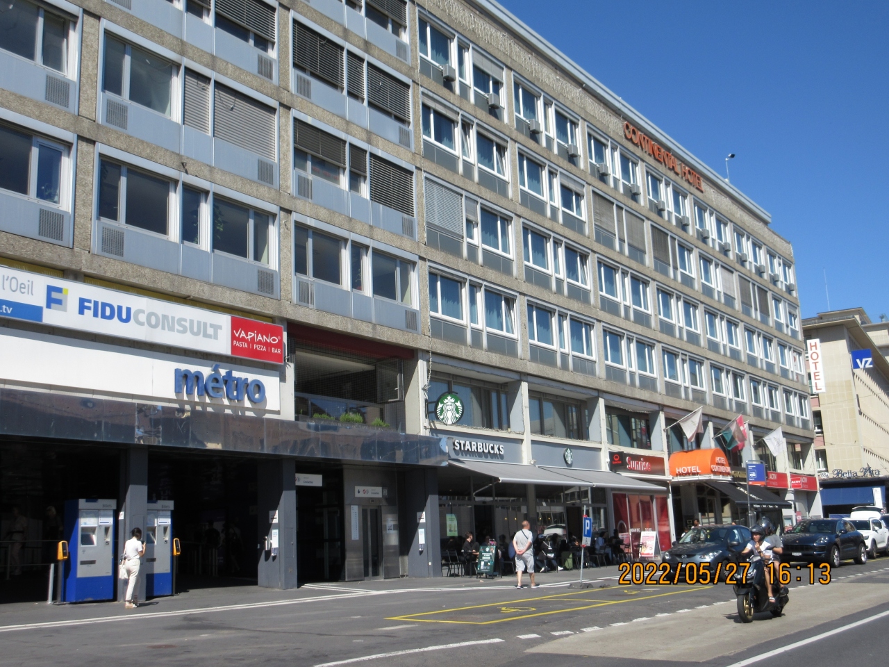 ローザンヌ駅の表側(一番線側)を出ると道路をはさんで目の前にこのホテルがある。チェックイン時に市内交通が無料になるパスを発行してくれ、坂だらけのこの町ではメトロがとても助かった。