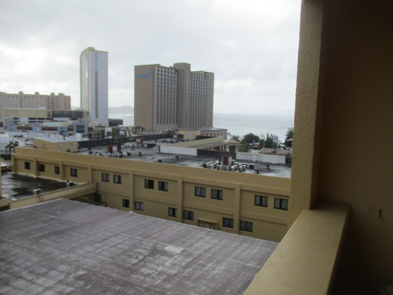 グアム プラザ リゾート&スパのベランダから青い海が見えます。建物は古いものの掃除も綺麗にされており快適に過ごせました。ビーチには膝くらいの深さでも小さいかわいらしい魚が見れました。ゆっくり過ごしたい人にはいいホテルだと思います。