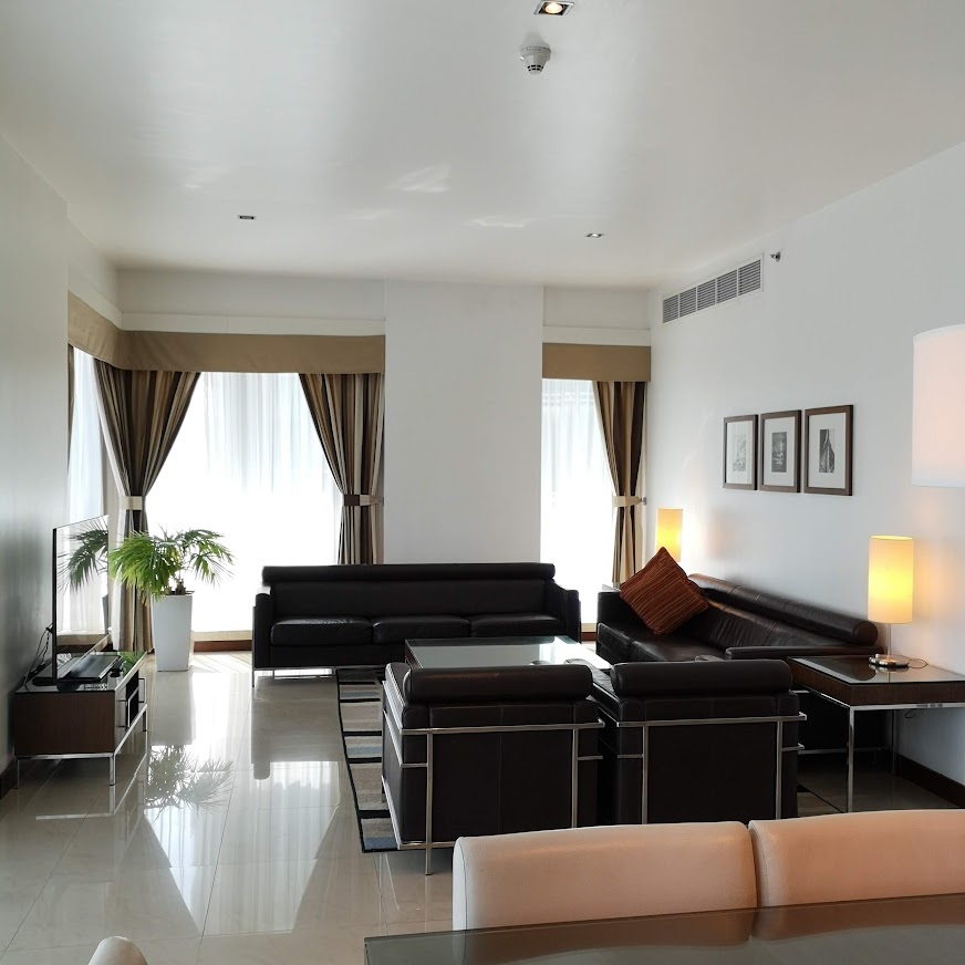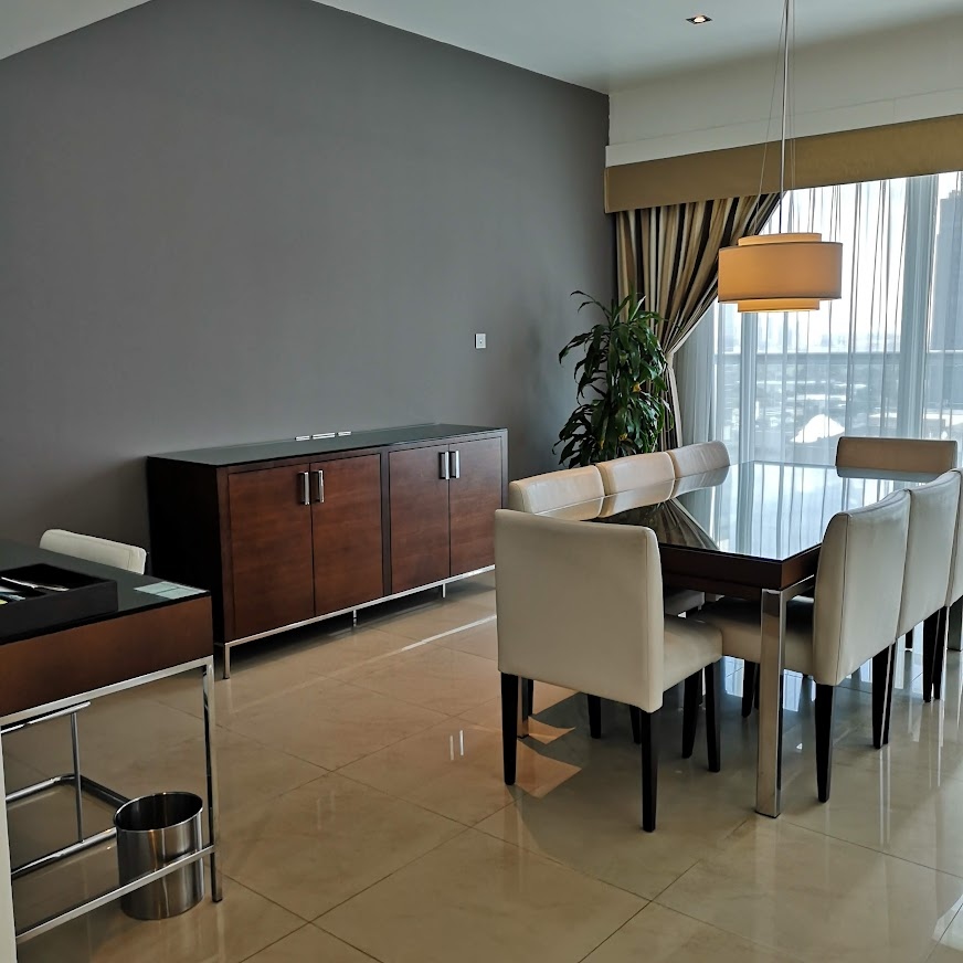 ドバイのビジネス街にあるホテルです。部屋からブルジュハリファが少し見えます。
