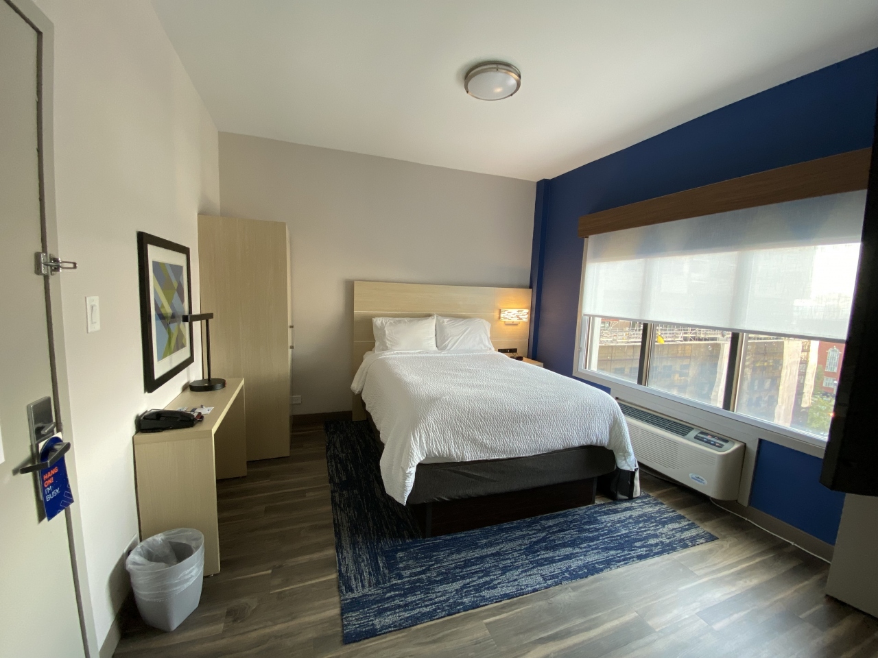 ダウンタウンの中心街なので立地は良いです。敷地内の平面駐車場は無くバレーパーキングにクルマを預けます(有料$33)。1918年に建てられたという古いホテルですが、客室は小さ目ながらモダンにリノベートされていました。大型ホテルなので朝食会場は広く、ホリデイ・インの定番メニュー、ソーセージにオムレツ、スクランブルエッグ…などのホットミールにパンケーキなどが揃っていました。アトランタに本社がある菓子パンチェーンのシナモンロール「シナボン(CINNABON)」もありました。チェックアウト時にバレーパーキングにチップを渡し車を出庫。駐車場代が高いですが、宿泊自体はそれほど高くなくて良かったです。