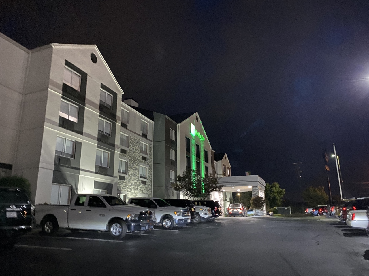 ノースカロライナ州のチムニーロック観光の拠点に利用しました。アメリカでは今のところ、IHG系列のメンバーになってホリデイ・インを定宿にしてます。高速道路沿いのちょっと辺ぴな郊外(郊外の商工業地ビジネス向け?)なので、駐車場は無料で客室は広めでした。プールもありました。周辺にはファストフードやレストランもいくつかあり。チェックアウト後に「ワッフル・ハウス」のスパルタンバーグ店で朝食をとりました。