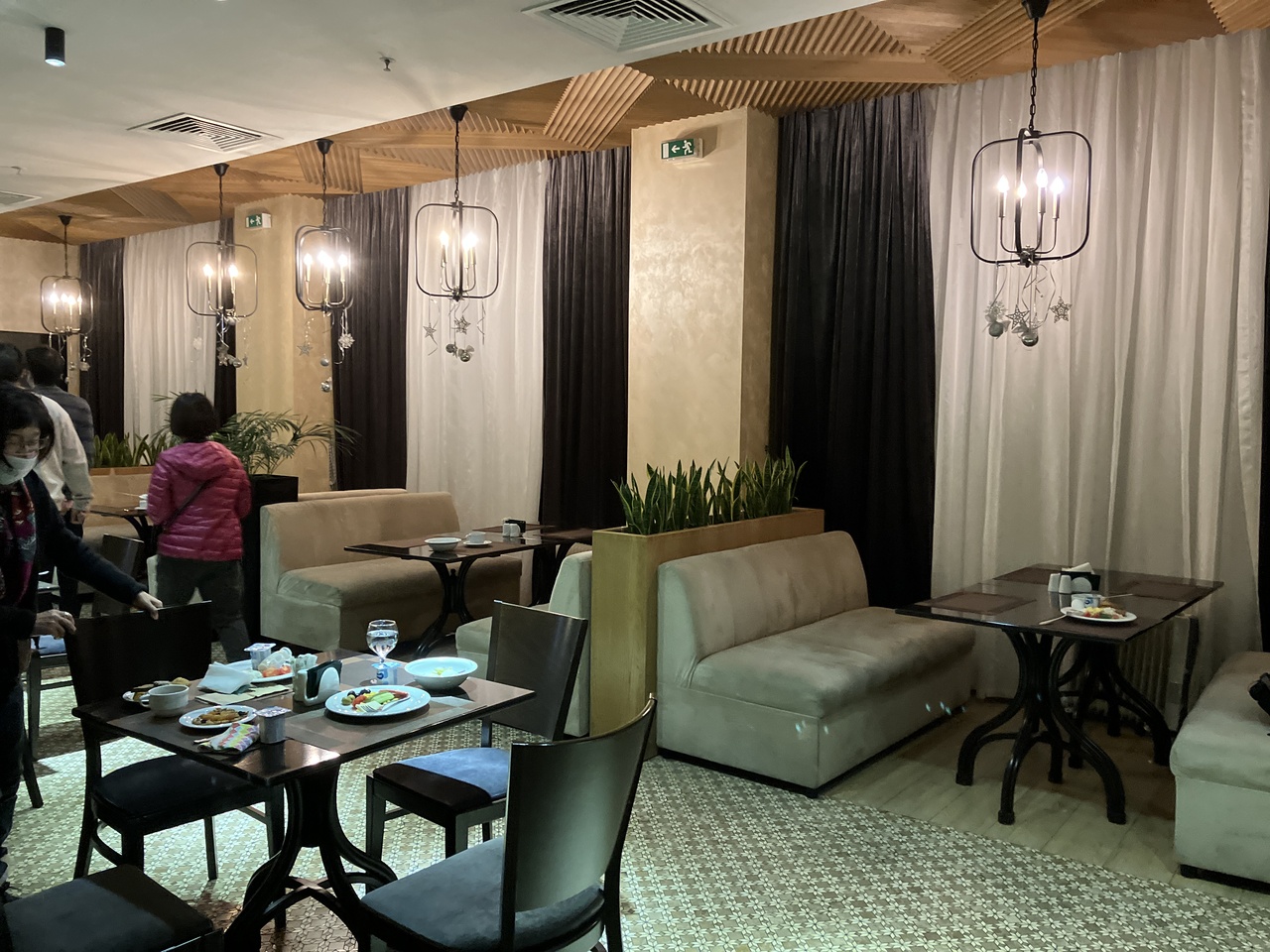 朝食会場には各種の食べ物が用意されていましたが、オープンの6時半には開いていなくて、行動が朝早めのツアーなのでゆっくり朝食が取れず残念。