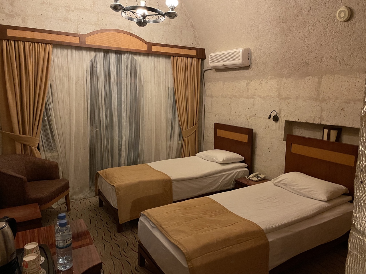 洞窟風ホテルを謳っているだけあり、外観も客室も岩を掘って造られたような雰囲気がありました。