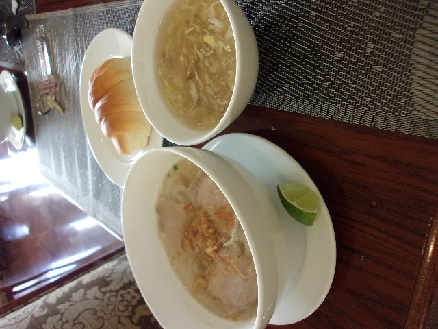 2泊目の朝は、メコン川ツアーの日で早朝出発だったのですが、依頼したら 朝食のボックスも用意してくれ助かりました。