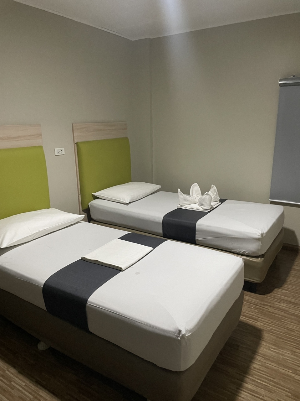 アメニティはチェックイン時にくれますが、歯磨きなんかは磨く側から破壊されていくかなりの品質のものです。持参してください。電源はろくに充電できずモバイルバッテリーがあったのでそちらで対応。wifiだけはまあまあ安定。1600ペソ、4000円くらいの宿です。隣の音は丸聞こえで朝になると飛行機の騒音がします。トランジット、早朝便の為と割り切れる方は便利かと。