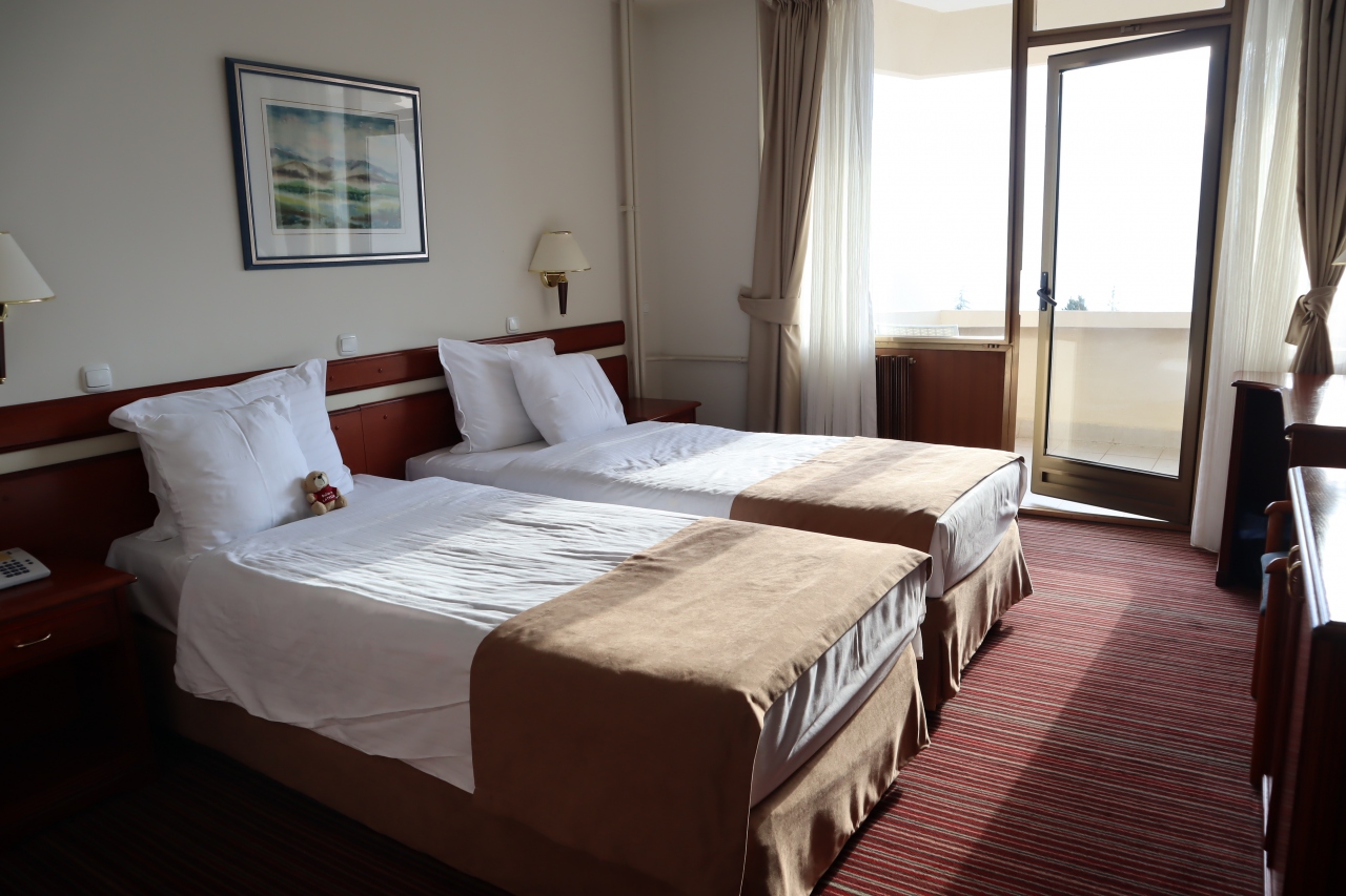 ツアー参加者全員はテラスからオフリド湖が見える+バスタブ付きの浴室のある客室でした。