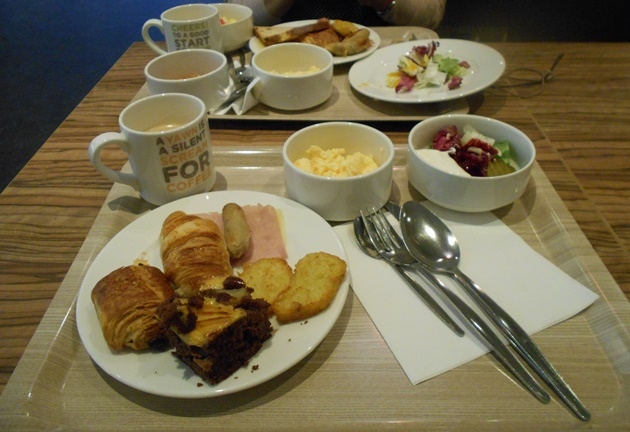 深夜に到着する予定だったので、高いけれど駅前のホテルにしました。外の音は聞こえず静かです。シャワーのお湯が出ませんでしたが、ホテルに連絡するのも疲れていてそのままにしました。朝食の内容は普通で、2日間とも同じ内容が少し残念でした。