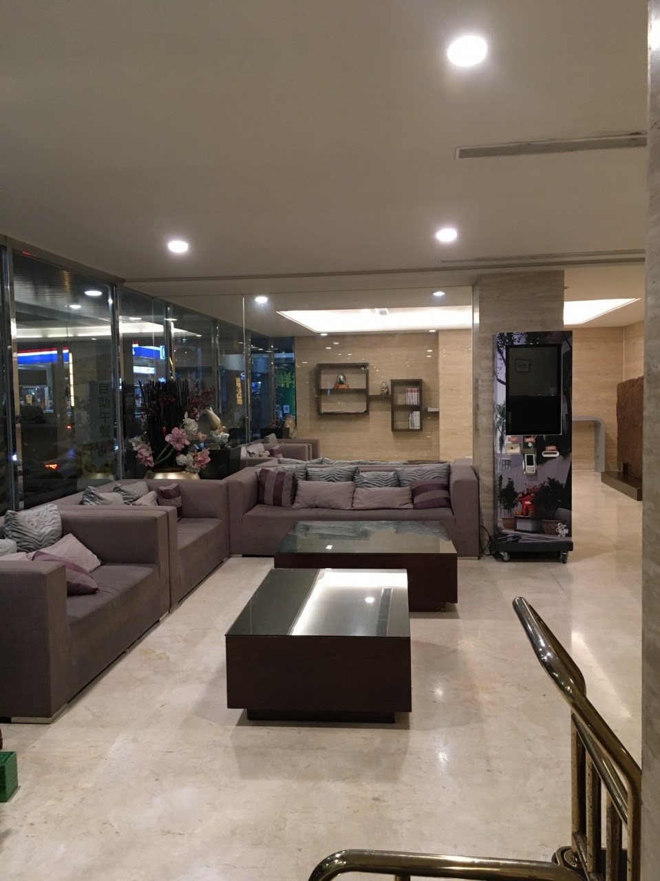 全体的に紫、ワインレッド、ベージュな部屋でした。家具は濃いめの茶色なので、インテリアのコーディネートとしては、重たい感じになっていました。シャワールームに取り付けてあったシャンプーとボディーソープがいい香りでした。